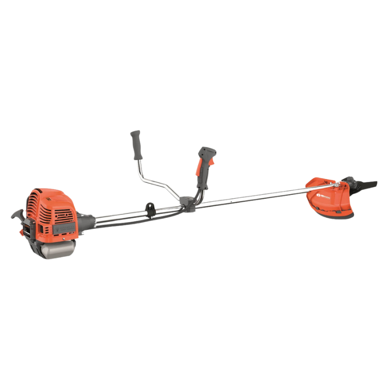 - Accesorios: Manija tipo P, cabezal de tanza, protector de césped, arnés, kit de herramientas, botella de mezcla de combustible, lentes de protección.