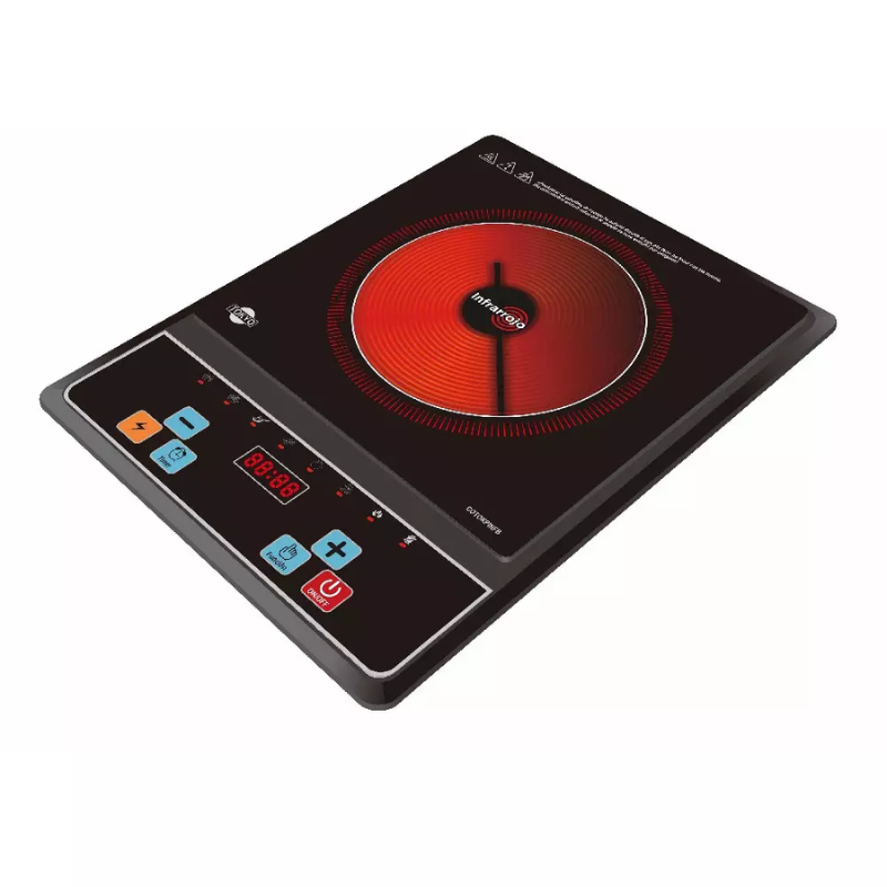 Cociná fácil y seguro con la placa infrarroja Tokyo de 2000W, que incluye olla de regalo, protección contra sobrecalentamiento, pantalla regulable, timer digital y manejo simple.